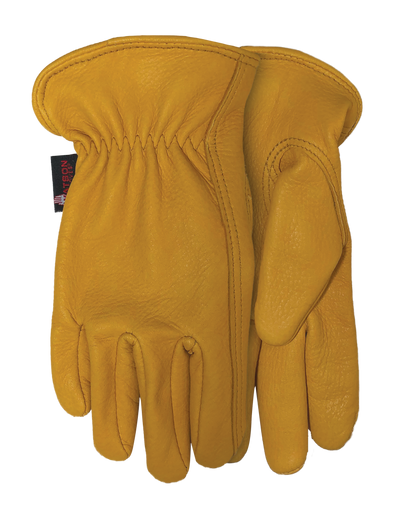 Premium full-grain deerskin leather, drivers style with inset thumb, shirred elastic wrist, slip-on style cuff, made for a womans hand