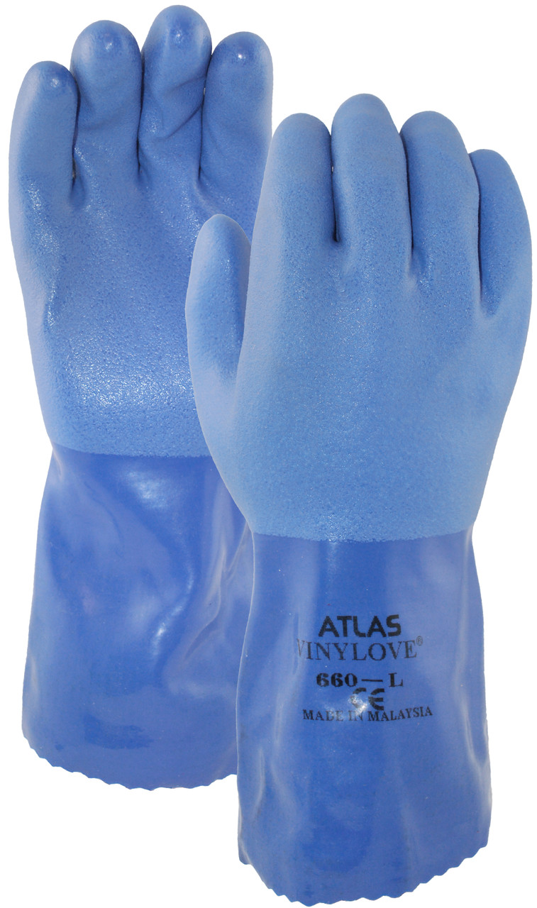 Triple-dipped PVC coating, cotton lining, textured sure-grip finish, 12" gauntlet